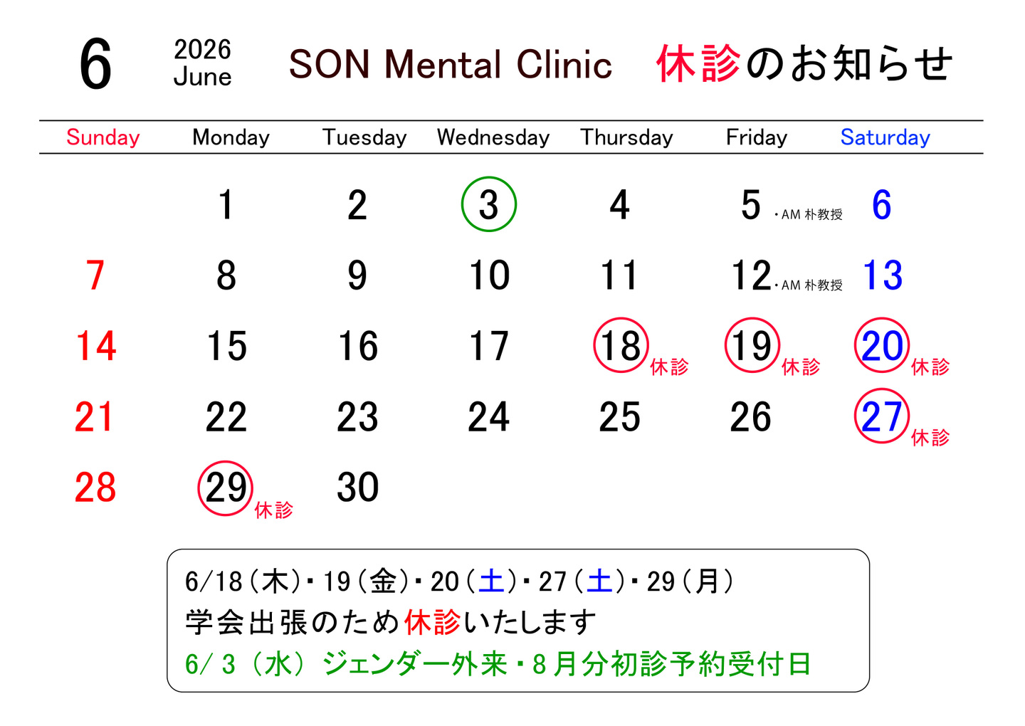 2021年4月から、ジェンダー外来は水曜日の午後、金曜日の午後に変更になりました。詳しいことはお問い合わせください。